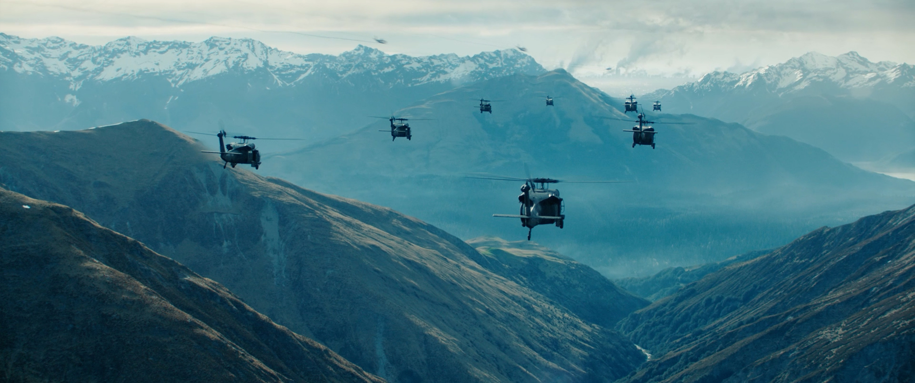 The attention to detail across modelling, shading and animation meant the helicopters could integrate seamlessly with the live-action photography, even in shots where the aircraft filled a large portion of the frame.