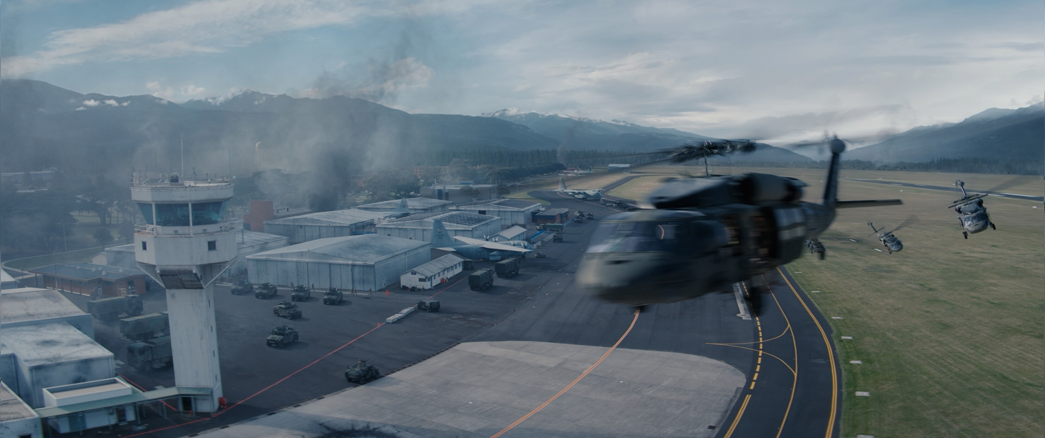 One of the most technically ambitious aspects of FIN’s work was the creation of the film’s CG Blackhawk helicopters.